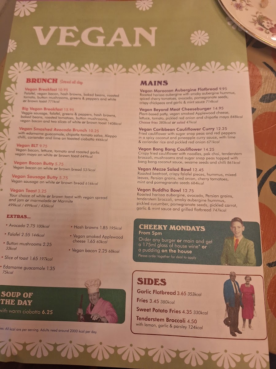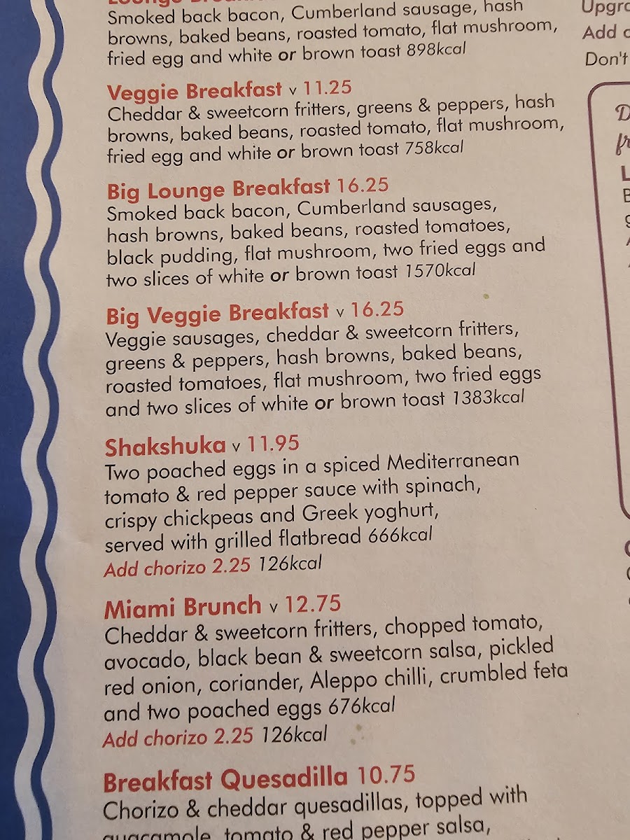 Veggie sausages, cheddar & sweetcorn fritters, greens & peppers, hash browns, baked beans, roasted tomatoes, flat mushroom, two fried eggs and two slices of white or brown toast